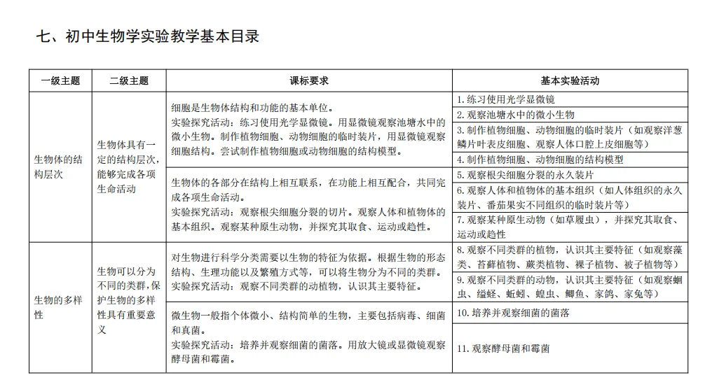 七、初中生物學(xué)實驗教學(xué)基本目錄 ...........................................................................................................41