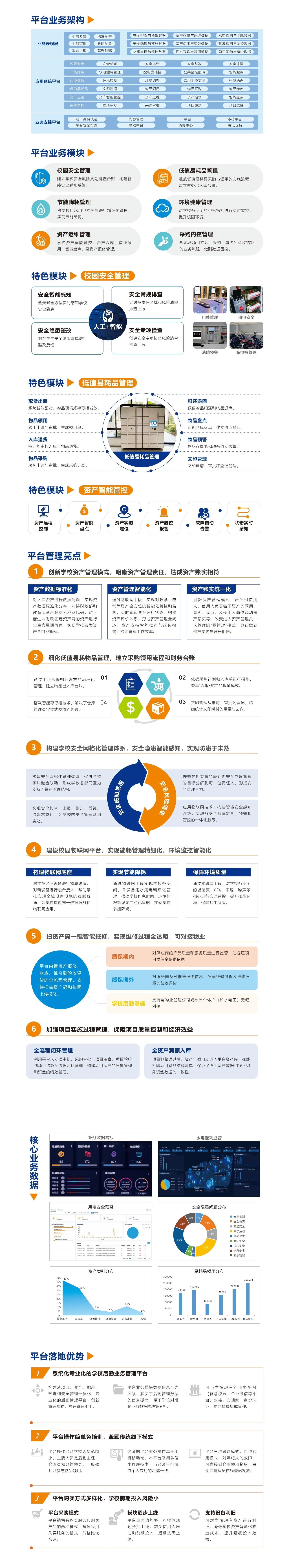 為學(xué)校提供一套專業(yè)化、系統(tǒng)化的后勤管理方案,涵蓋低值易耗品管理、資產(chǎn)運(yùn)維、校園安全、節(jié)能降耗、環(huán)境健康及采購(gòu)內(nèi)控。主要模塊: