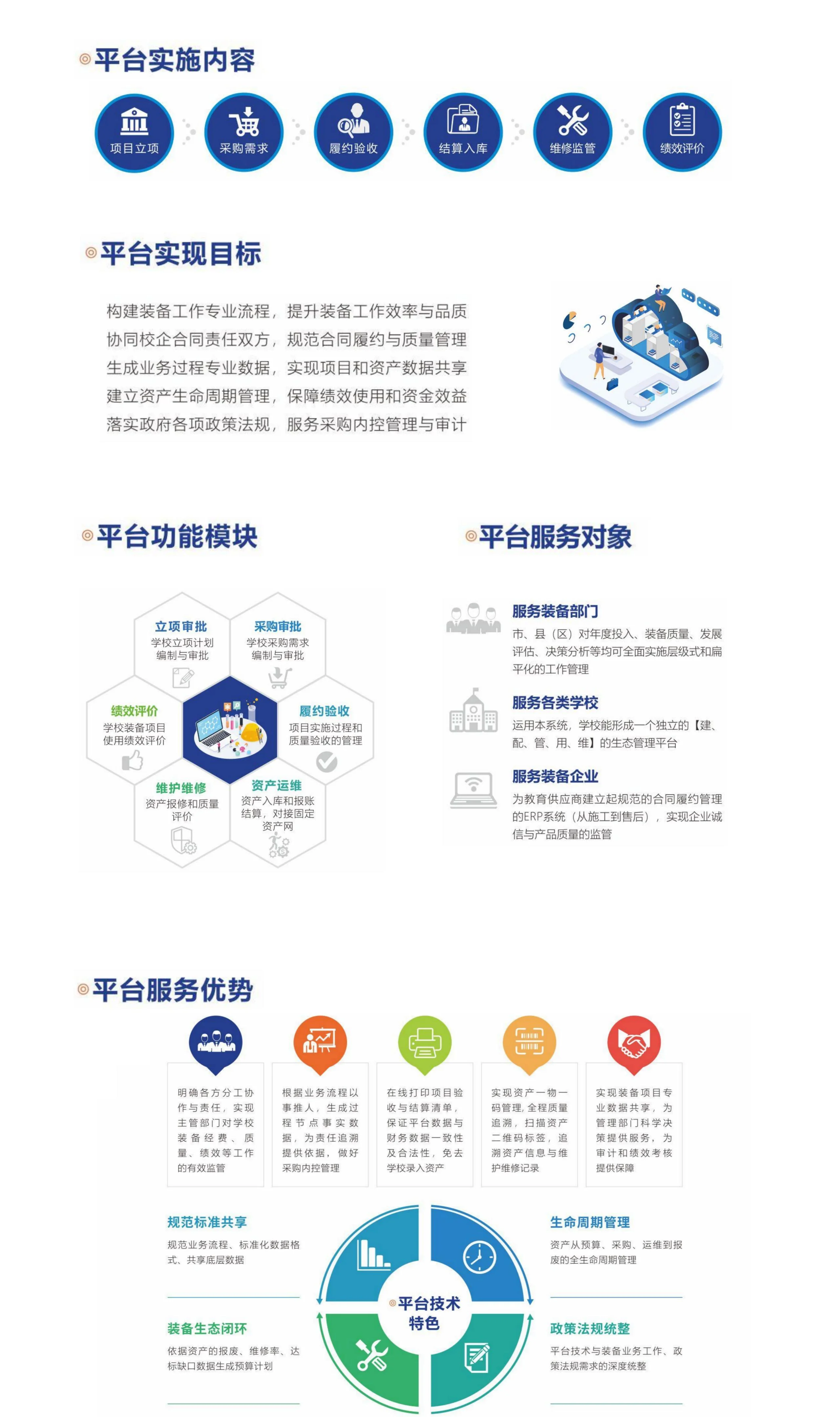 構建涵蓋項目立項、采購、履約驗收、報賬入庫、保修監(jiān)管及使用績效評價的全流程閉環(huán)管理。主要模塊: